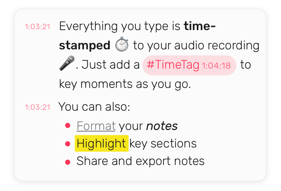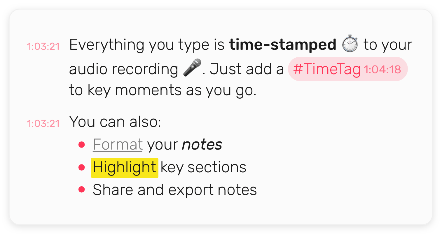 "If you’ve ever tried to take notes while someone’s speaking, you know that capturing every word is impossible – Noted solves both problems by letting you take notes while recording time-stamped audio, saving you lots of time."